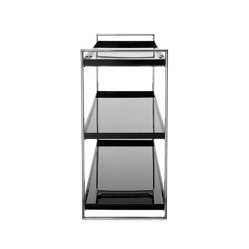 トレイの部分は光沢のあるアクリル樹脂製、脚部はクロームコーティングされた金属製です。