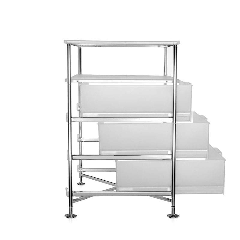 モビル は、軽さ、移動性、機能性、耐久性がすべて揃ったシステムチェストです。お洒落なデザインとカラー展開で、家庭・オフィスを問わず、あらゆる環境で様々な用途に対応します。棚板と引出しの仕上げには、エレメントの組み合せとキャスターの有無により、寝室から応接間やバスルームまで、様々な空間に馴染みます。