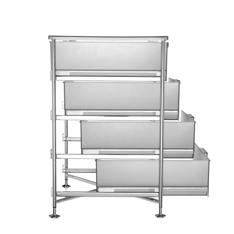モビル は、軽さ、移動性、機能性、耐久性がすべて揃ったシステムチェストです。お洒落なデザインとカラー展開で、家庭・オフィスを問わず、あらゆる環境で様々な用途に対応します。棚板と引出しの仕上げには、エレメントの組み合せとキャスターの有無により、寝室から応接間やバスルームまで、様々な空間に馴染みます。