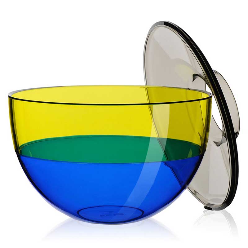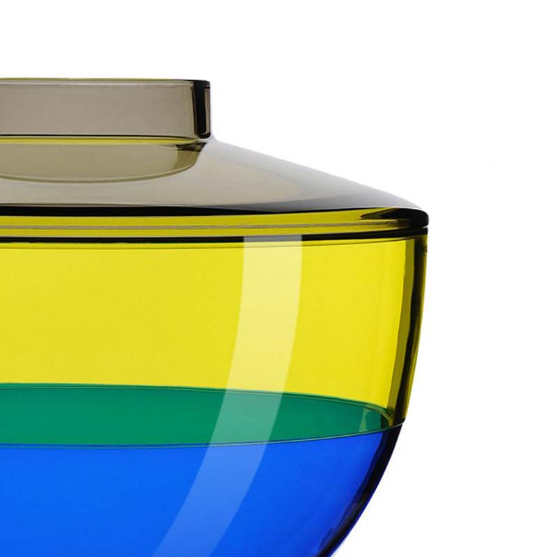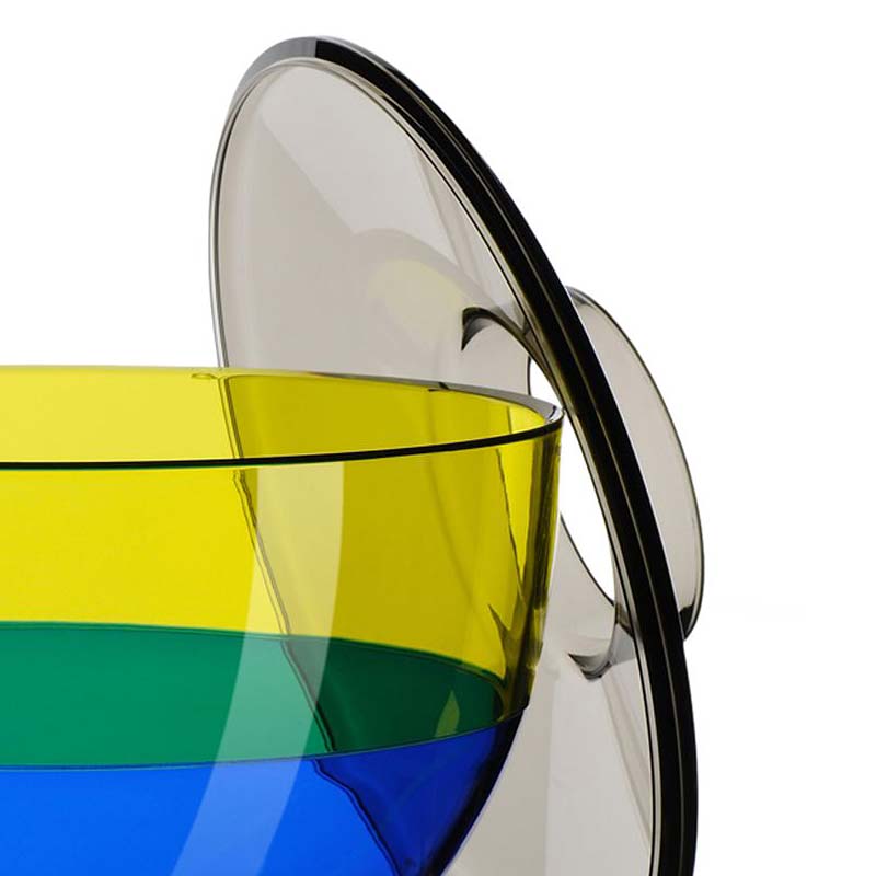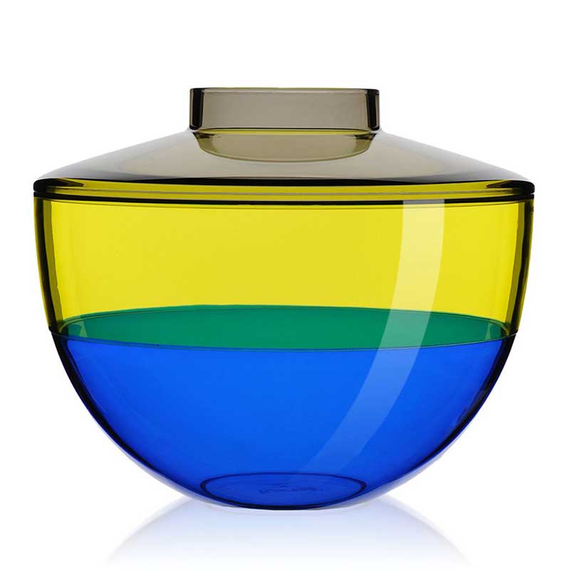 Kartellらしいポップで、異なる3つのカラーがとてもカラフル。蓋に穴があいているので、フラワーベースとして使用できます。フラワーベースとしてだけでなく、蓋を外して、お菓子や小物を入れたり、ちょっとした収納ボックスにもなります。プラスチック製品とは思えない、ムラーノの吹きガラスのようにリッチな質感を感じさせるので、装飾品としてもおすすめです。