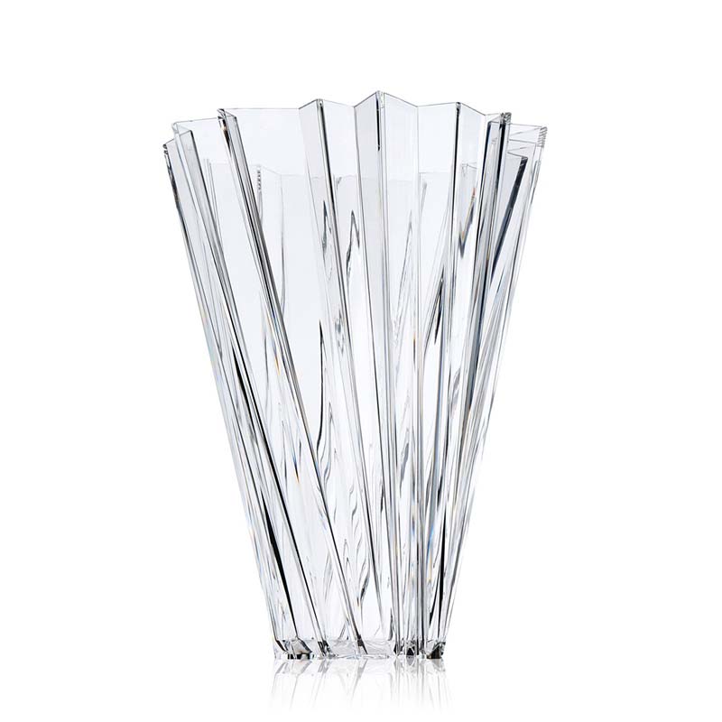 底部から上へ向かって、まるでつむじに押されてできたかのように開いた切り子風のベース。その形状が輝きと強さを感じさせます。シャンハイは、屈折したクリスタルや金属が交互に放つ光と影の屈折のよう。不規則な幾何学模様を描いて、その魅力はその名のとおり、様々な形や色がいっぱいの上海の町を思わせます。