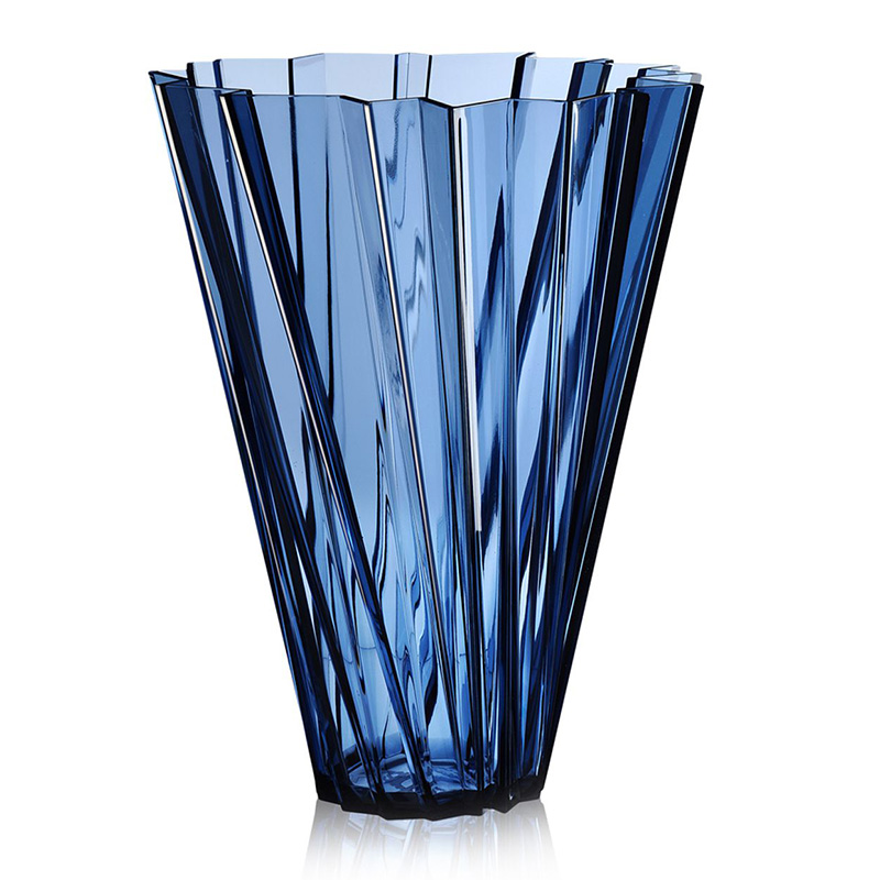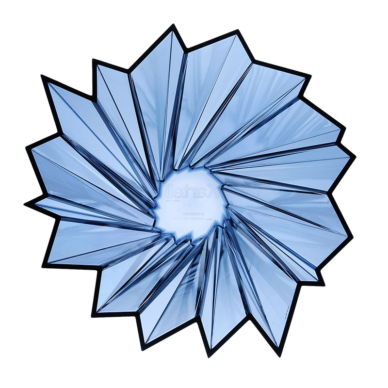底部から上へ向かって、まるでつむじに押されてできたかのように開いた切り子風のベース。その形状が輝きと強さを感じさせます。シャンハイは、屈折したクリスタルや金属が交互に放つ光と影の屈折のよう。不規則な幾何学模様を描いて、その魅力はその名のとおり、様々な形や色がいっぱいの上海の町を思わせます。