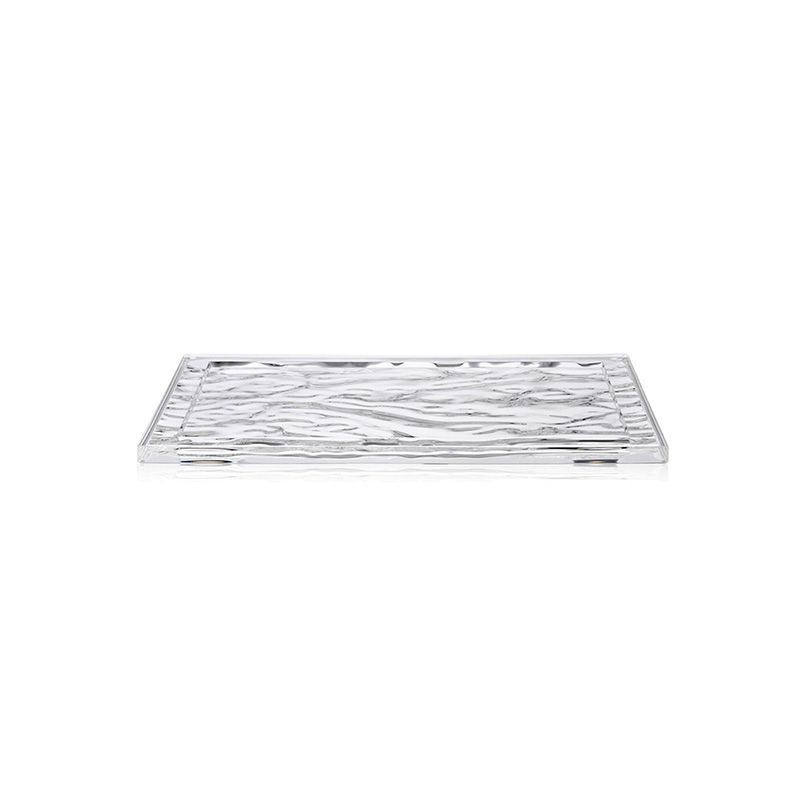 見る人や使う人に何も語りかけてこない存在感のないトレイなんて、つまらないとは思いませんか?物を運ぶためだけでパーソナリティのないトレイなんて。半透明のPMMAでできた彫刻のようなトレイは、色彩と光の輝きによりその上のグラスやカップを三次元的な不思議効果で演出します。ときに海の波、砂丘、つややかなシルク、さらには貴金属のように見えることもあります。これらの虹色のトレイは使う人に思いもよらない感動を与えるために創造されデザインされたものです。