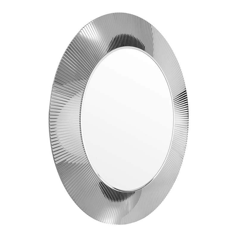 ラウンドしたプリーツ状のフレームは光の反射を意識したデザイン。これは、カルテルが生んだアイコニックな照明ブルジーを思い起こす、紛れもないバロック調の華麗なスタイル。人の姿を映し出す鏡としてだけでなく、インテリアとして光の効力を考えてつくられました。