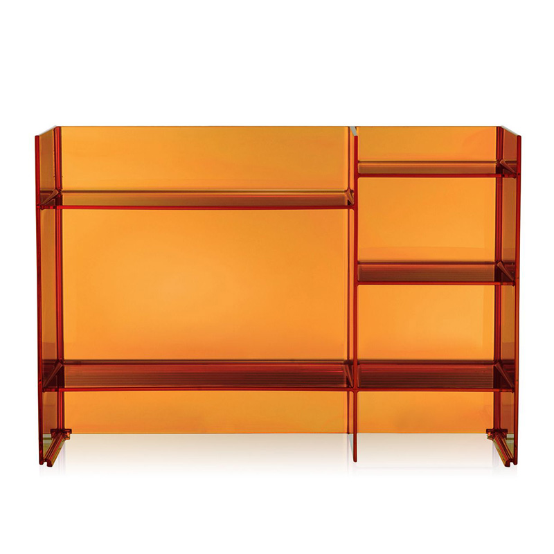 このシンプルなキャビネットは、バスルームのコーナーや壁面スペースなど、どんな場所にもフィットする使い易さをもっています。横に並べたり、積み重ねてみたり、ラックとしての実用性はもちろん、透過性があるので、空間の間仕切りとしても圧迫感を感じさせません。