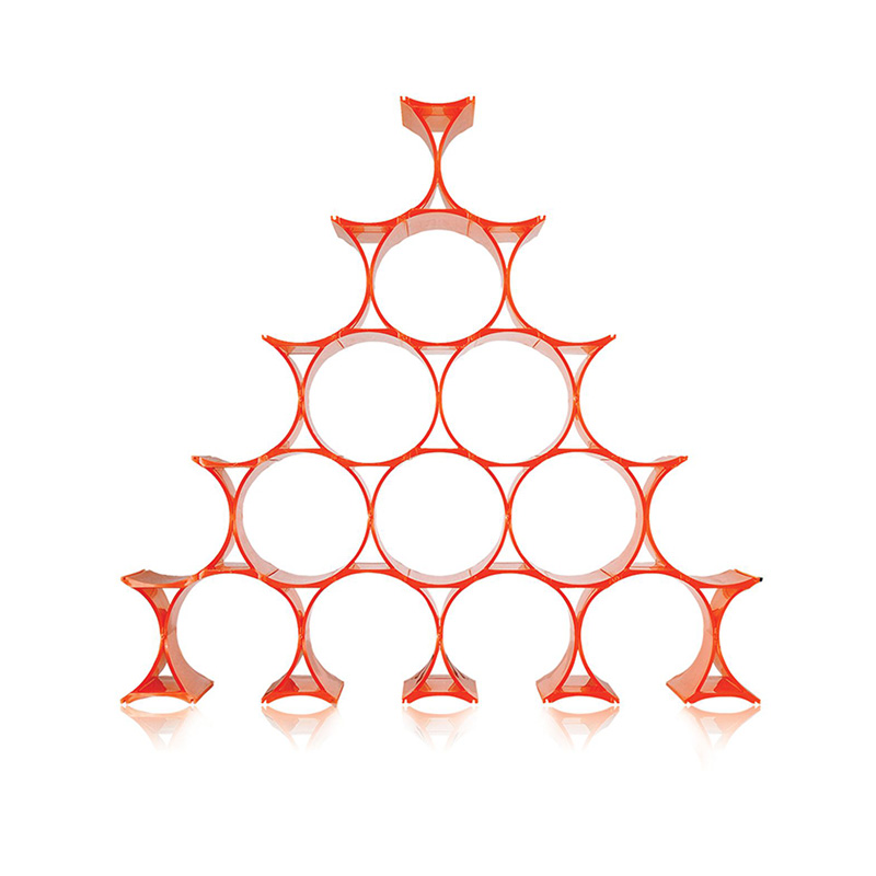 16個のエレメントが一組になっており、エレメント同士を固定して、お好みの大きさや形のラックに組み立てることができます。オリジナリティあふれるプレゼントとしても最適で、もらった人が自由に組み立てられます。