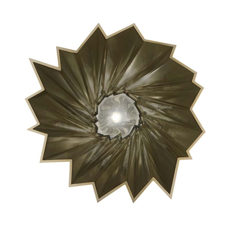 底部から上へ向かって、まるでつむじに押されてできたかのように開いた切り子風のベース。その形状が輝きと強さを感じさせます。シャンハイは、屈折したクリスタルや金属が交互に放つ光と影の屈折のよう。不規則な幾何学模様を描いて、その魅力はその名のとおり、様々な形や色がいっぱいの上海の町を思わせます。