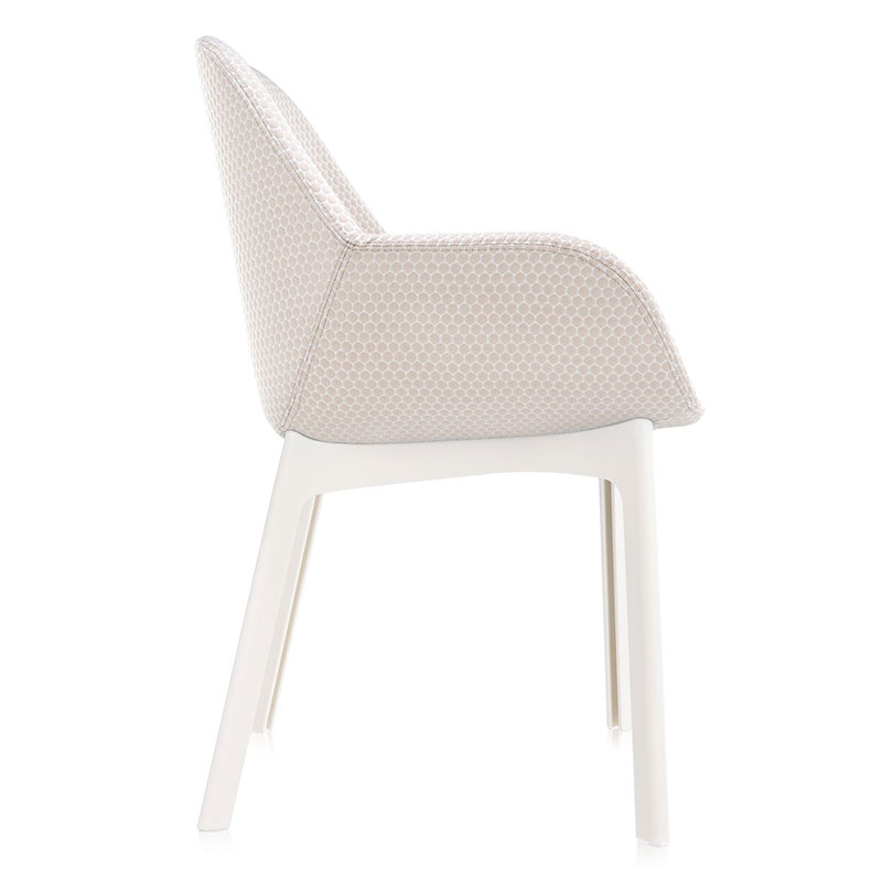 パトリシア・ウルキオラデザインのチェア。ハニカム柄のエレガントで機能的なファブリック張りの座面と耐久力に優れたプラスチックのフレームが特徴的です。さまざまなインテリアスタイルにマッチします。