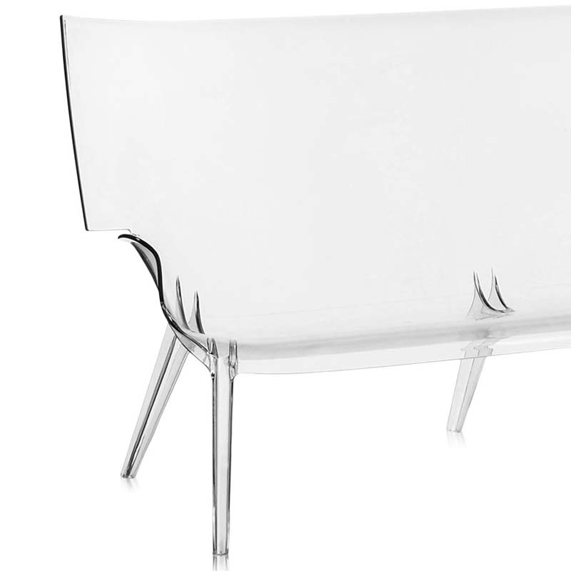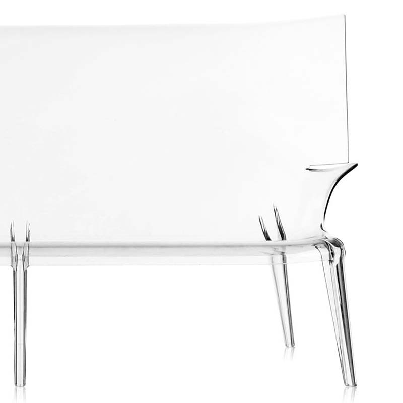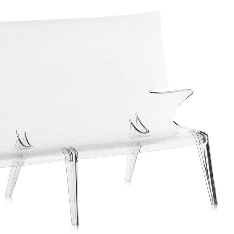 フィリップ・スタルクによる、一体成型透明ポリカーボネート製の革新的チェア、アンクルジャックは、曲線美が非常に魅力的なチェアで屋内、屋外を問わずさまざまなインテリアのニーズに対応します。幅190cmの一体成型にして30kg の軽さを実現しました。
