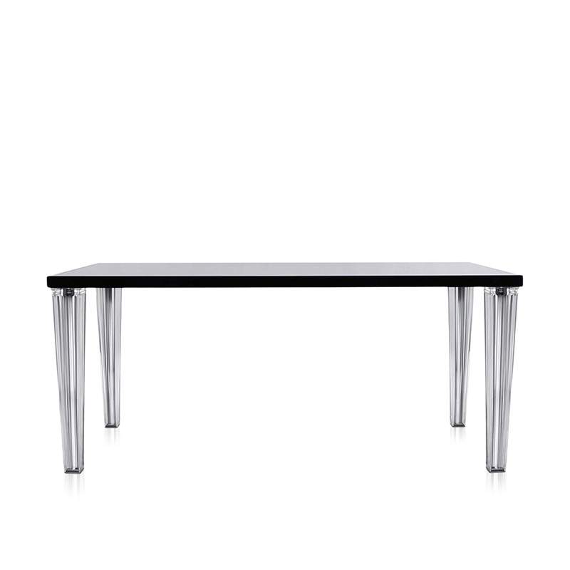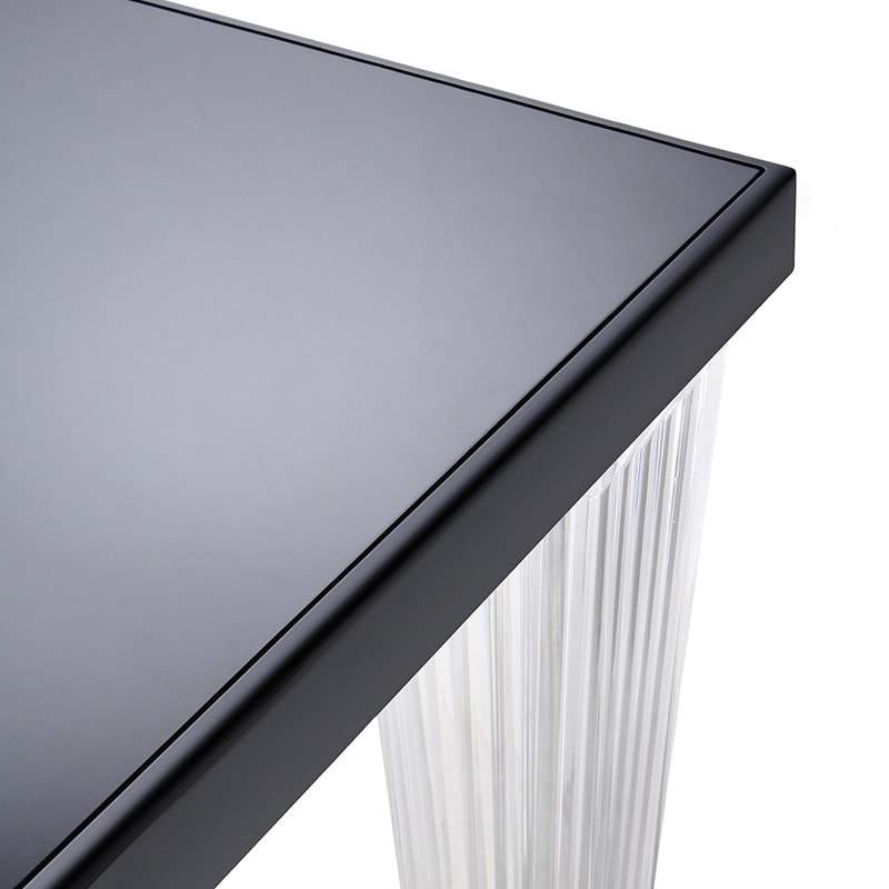 トップトップのダイニングテーブルは、グロッシーな面と透明な面を組み合わせたオリジナリティ溢れるテーブル。ミニマルでエレガントなラインを、プリーツのような筋の入った透明の脚が一層引き立てます。脚の断面は四角でメタル製の芯入りです。サイズと素材のバラエティがあり、様々な用途に対応します。