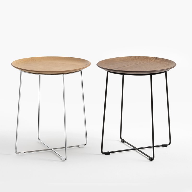 ウッドトレイをそのままリフトアップしたような必要最小限のパーツから成る脚部。ライトウッドにはクローム、ダークウッドにはクロームとブラックの2色から選べます。