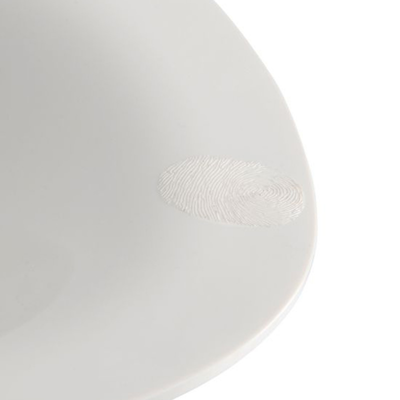 このコレクションの特徴は、プレートの縁に施されたエンボス加工のスタンプです。これは料理を提供するということを中心にすべてを展開するという、シェフの料理に対する特別なビジョンを反映したものです。
