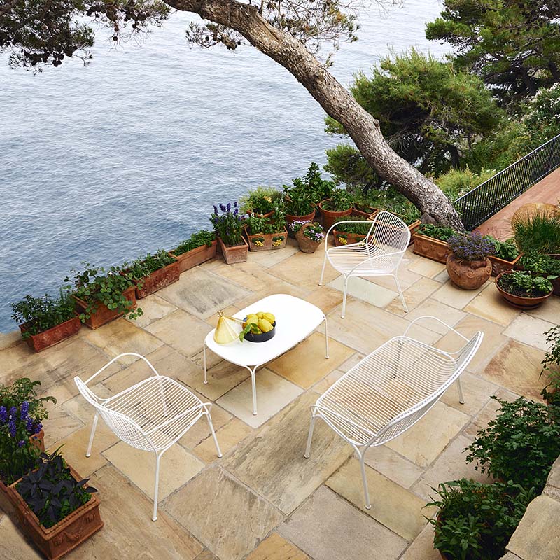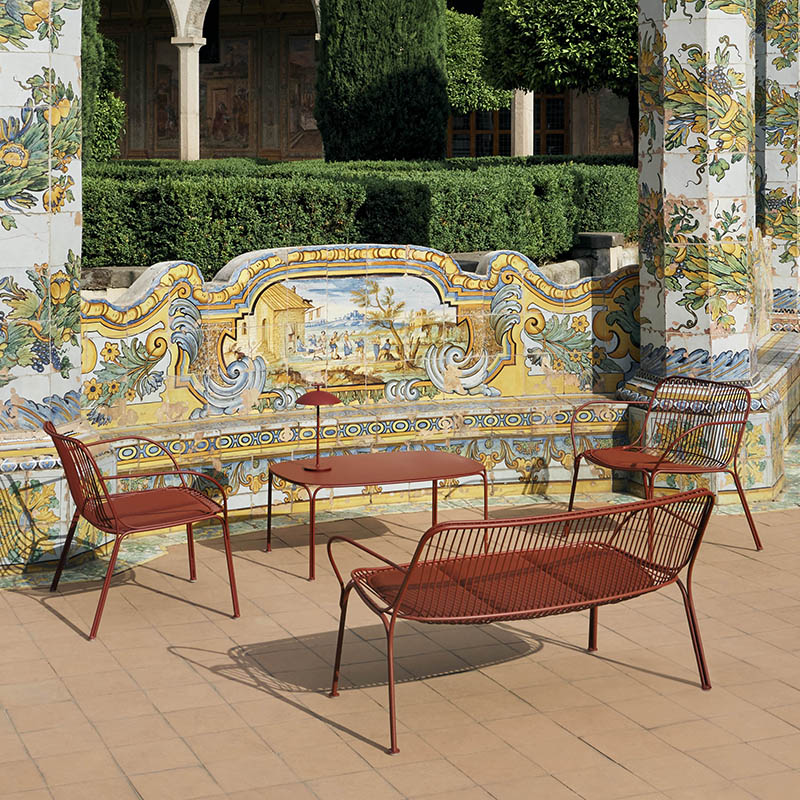 ハイレイシリーズにはチェア、アームチェア、ビストロに最適なテーブル、ロースタイルのアームチェア、ソファ、コーヒーテーブルなどの多くのバリエーションが揃っています。