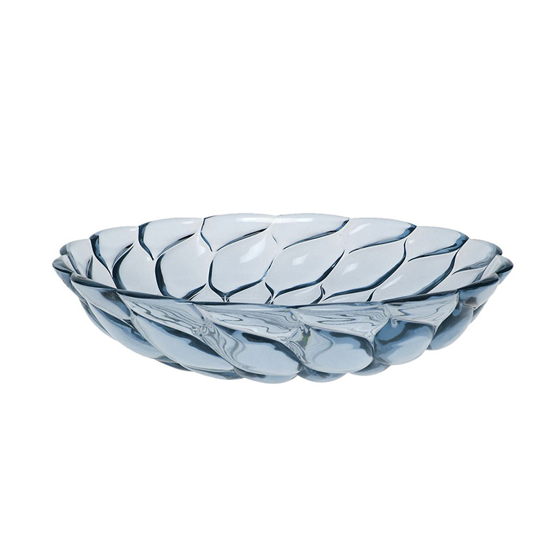 クリスタルガラスやダイヤモンドは、カッティングによって輝きや印象が変わります。このジェリーズも、表面のテクスチャ―デザインへのあくなき研究によって、今までのプラスチック製の食器では考えられなかった、驚きの美しさを実現させました。