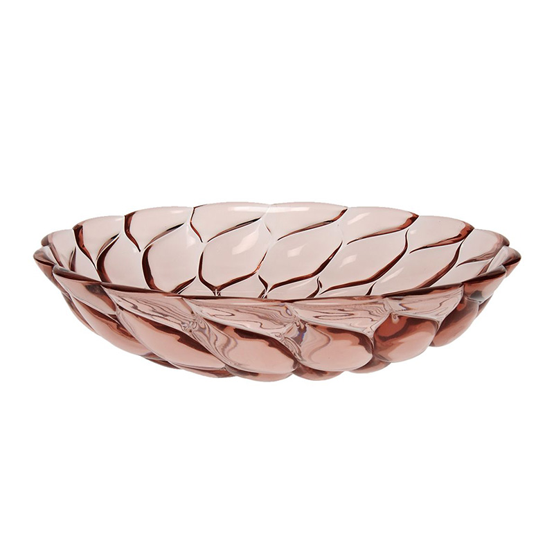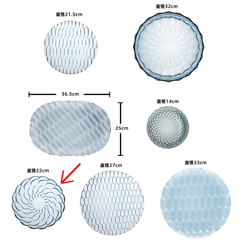 クリスタルガラスやダイヤモンドは、カッティングによって輝きや印象が変わります。このジェリーズも、表面のテクスチャ―デザインへのあくなき研究によって、今までのプラスチック製の食器では考えられなかった、驚きの美しさを実現させました。