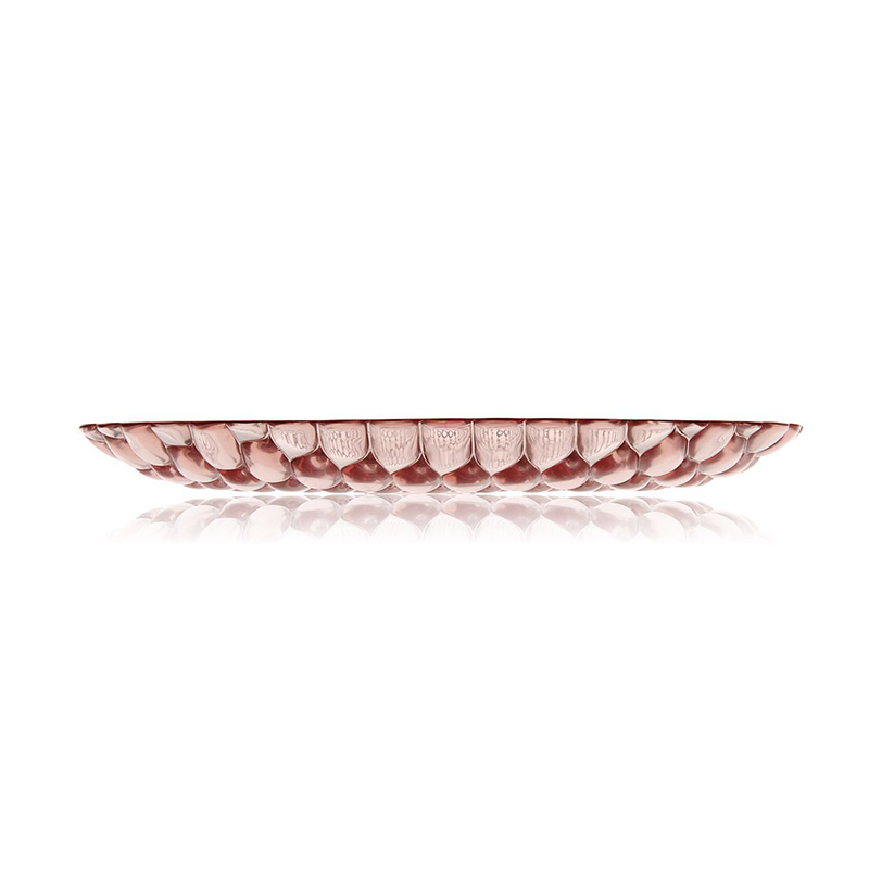 クリスタルガラスやダイヤモンドは、カッティングによって輝きや印象が変わります。このジェリーズも、表面のテクスチャ―デザインへのあくなき研究によって、今までのプラスチック製の食器では考えられなかった、驚きの美しさを実現させました。