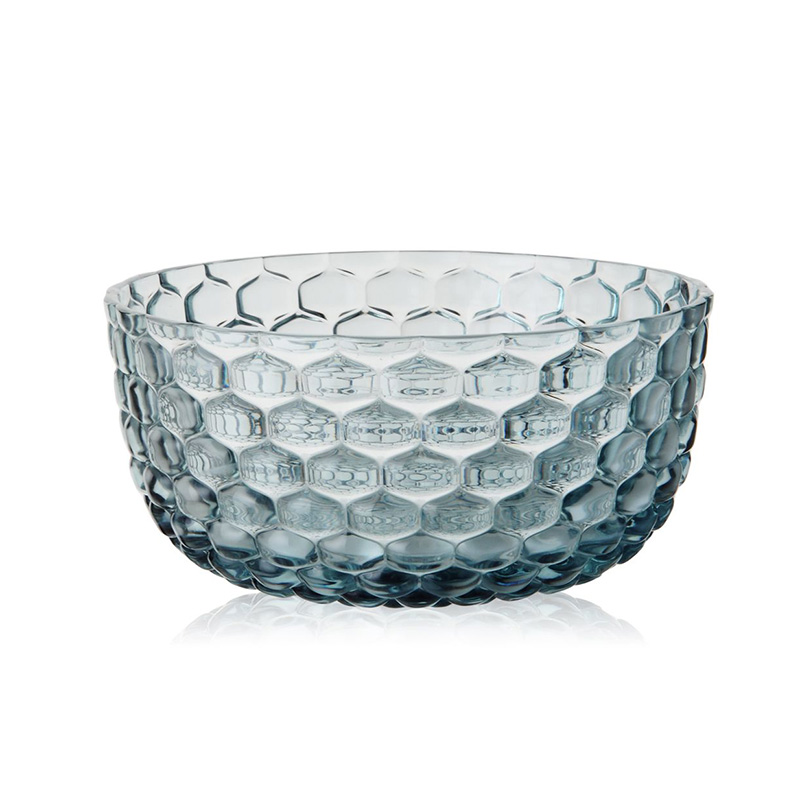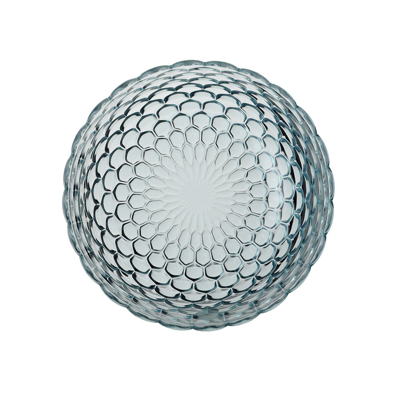 クリスタルガラスやダイヤモンドは、カッティングによって輝きや印象が変わります。このジェリーズも、表面のテクスチャ―デザインへのあくなき研究によって、今までのプラスチック製の食器では考えられなかった、驚きの美しさを実現させました。