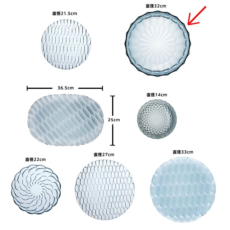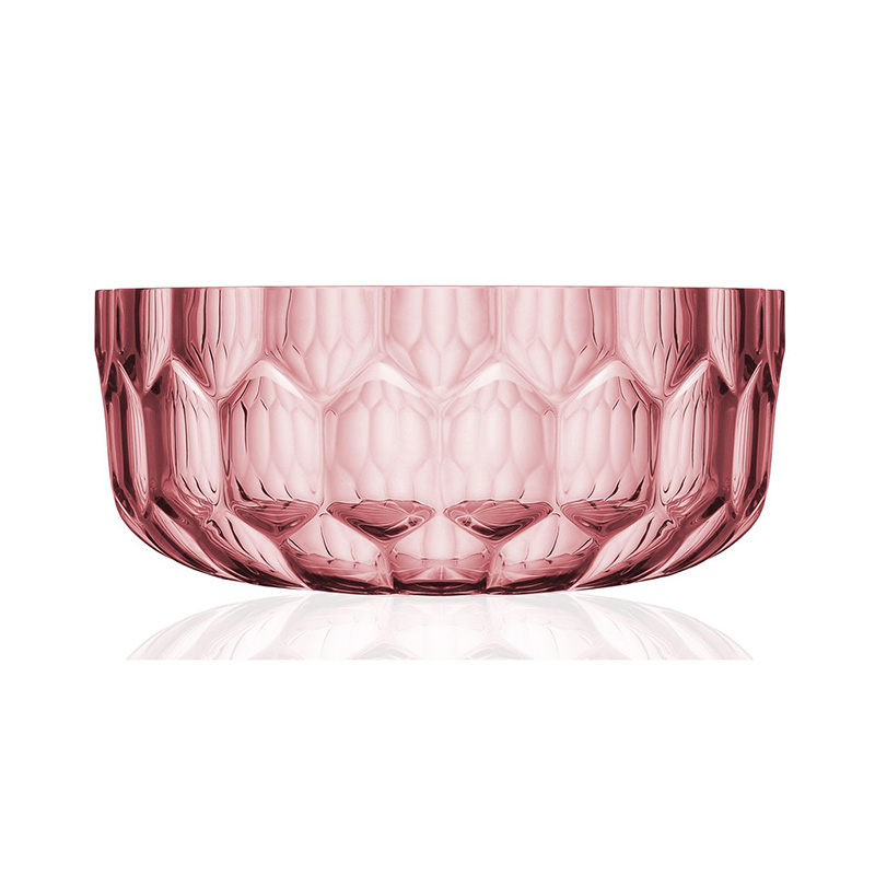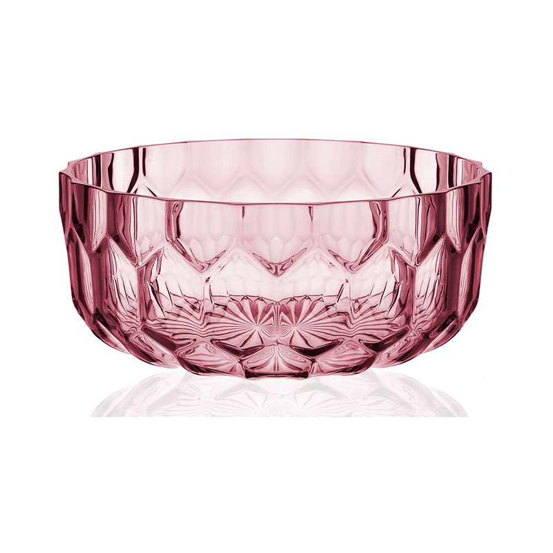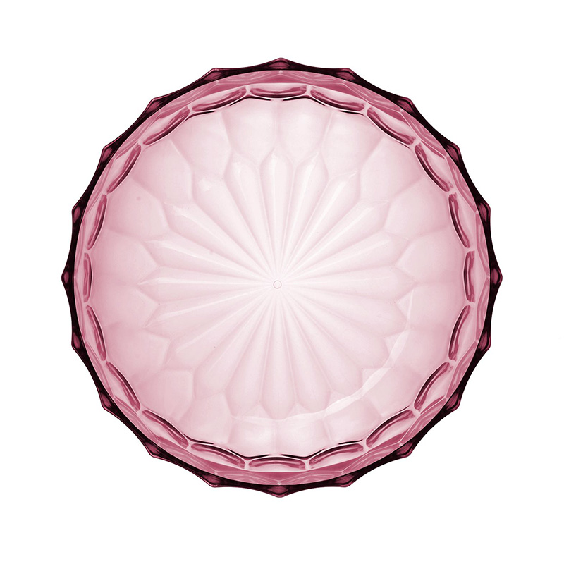 クリスタルガラスやダイヤモンドは、カッティングによって輝きや印象が変わります。このジェリーズも、表面のテクスチャ―デザインへのあくなき研究によって、今までのプラスチック製の食器では考えられなかった、驚きの美しさを実現させました。