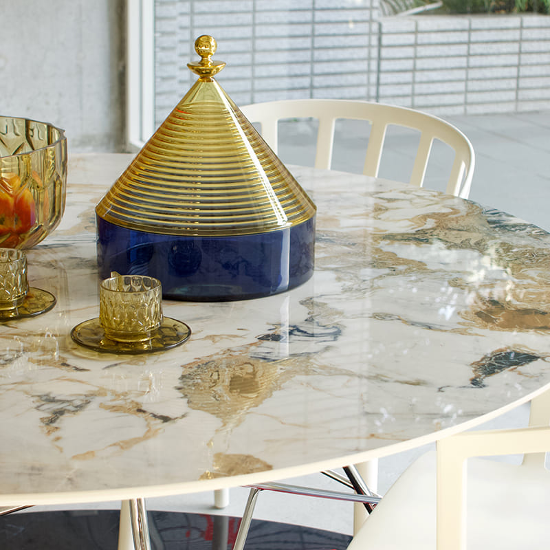 テーブルサイズは直径128センチのラウンドと、長さ192センチのオーバルの2種類です。