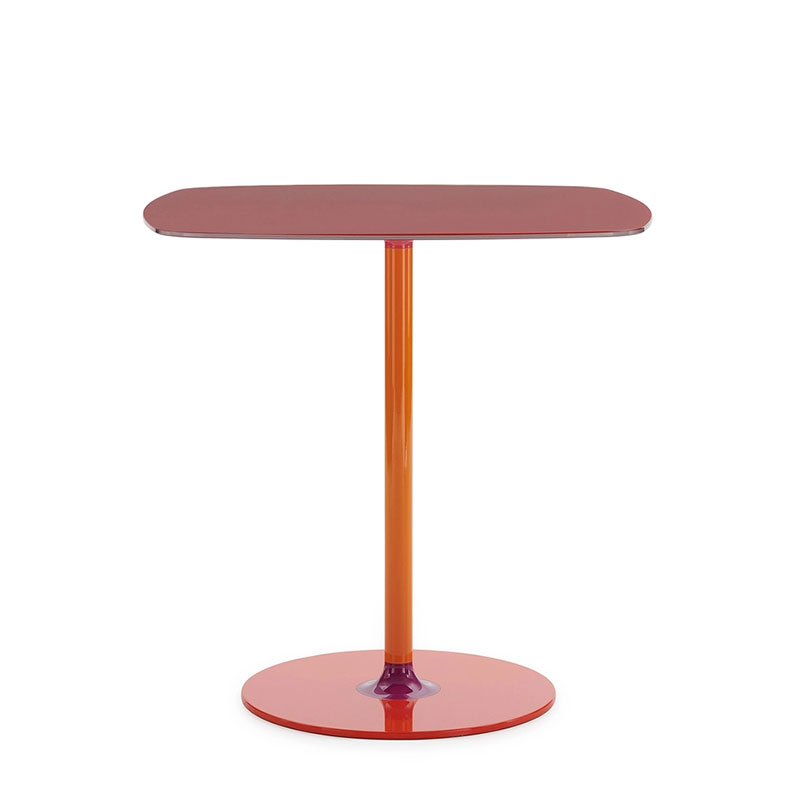 ガラストップは角の取れたスクエア形状、それを支える一本のメタルレッグはシンプルそのものです。