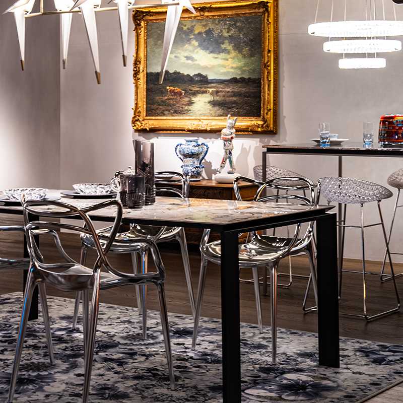 ティピカルな長方形テーブルでも、Kartell独自の美しいセラミックのマーブル柄をお楽しみいただけます。