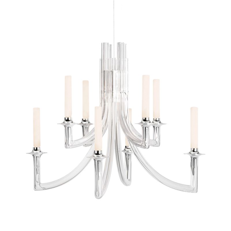 8本のアームからなるシャンデリアらしいスタイルでありながら、装飾的な要素を削ぎ落としシンプルでスリムなデザインです。