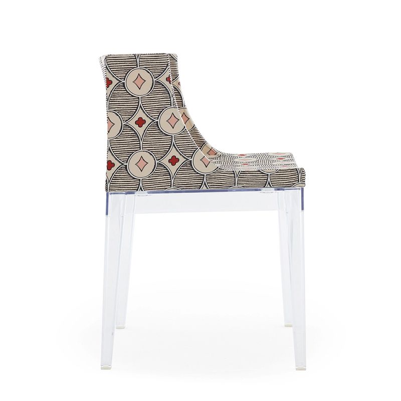 ルーク・エドワード・ホールがデザインした「ルベリ・クアットレフォイル|Rubelli Quatrefoil®」ファブリックは、カーペットのデザインにインスパイアされた幾何学的な模様が連なったオリジナル柄により、フィリップ・スタルクのマドモワゼルに思いがけず新しい仕上がりをもたらしました。