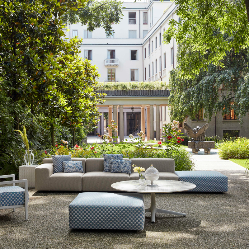 屋外で本格的なリビングスタイル空間を提供するソファシリーズ「プラスティックスアウトドア|Plastics Outdoor」に世界中で注目される英国テキスタイルブランド「リバティ|Liberty」のファブリックが登場。