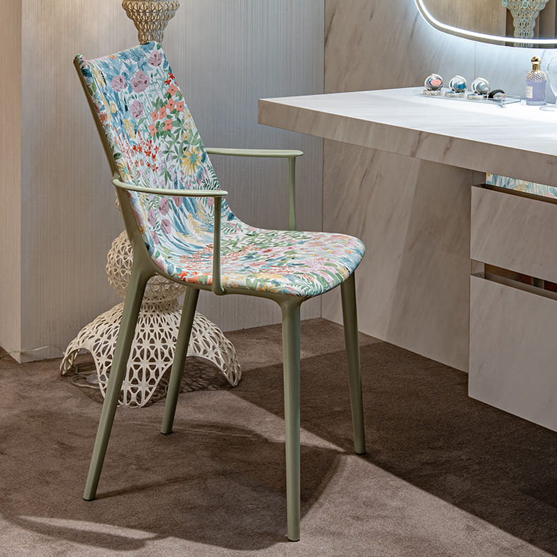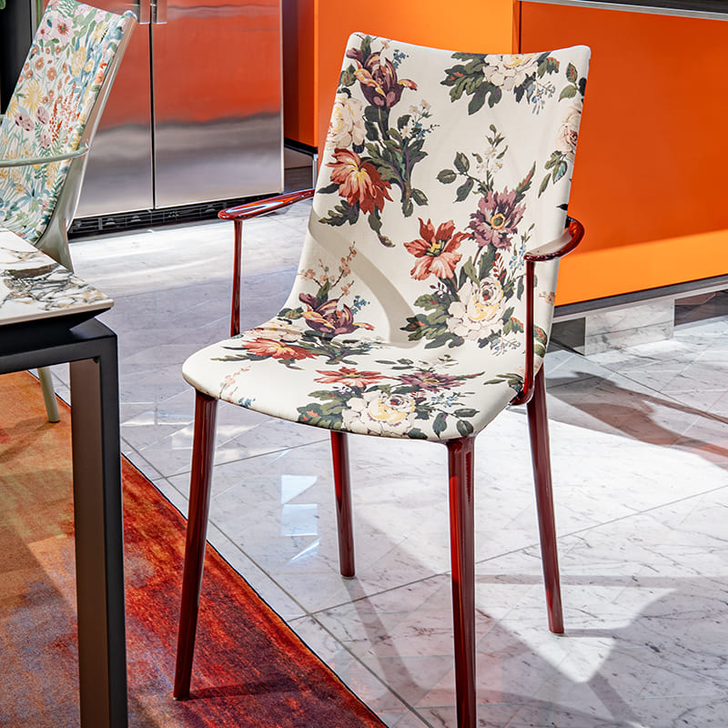 4. 先端技術による表現力の革新 Kartellが新たに導入した「グラフィックインプレッション」技術により、複雑な曲面にも高精度でパターン転写が可能に。 花柄や幾何学模様など、視覚的にも豊かな表現が可能となり、デザインの幅を広げています。