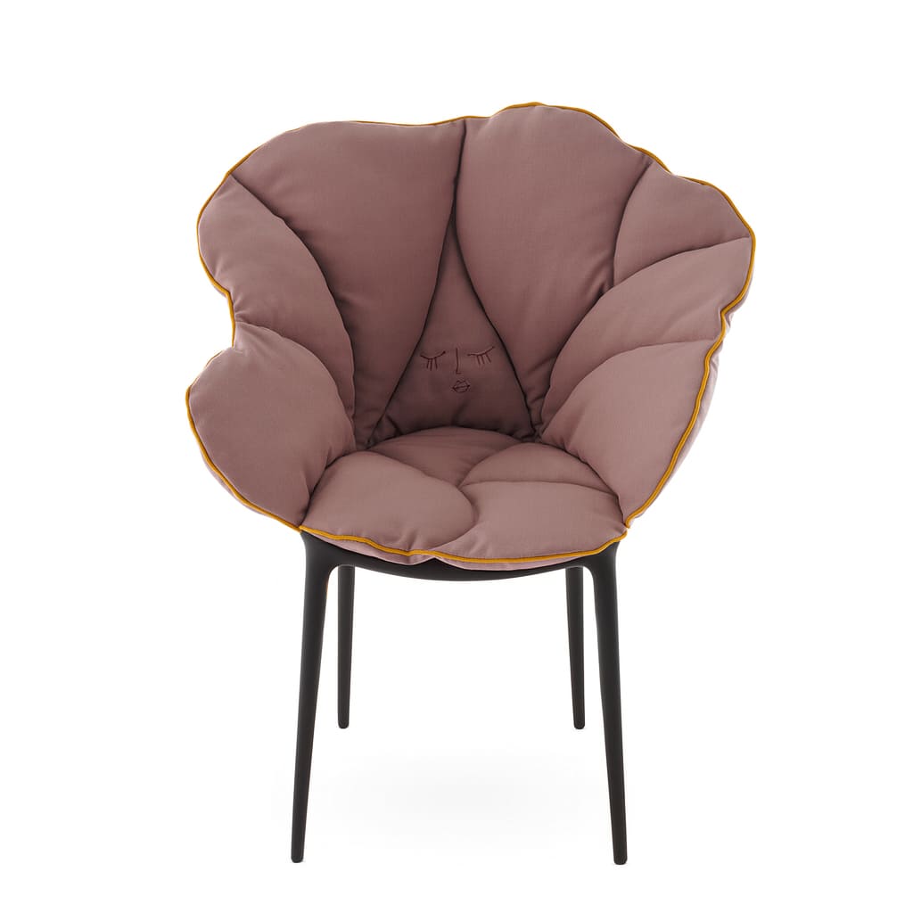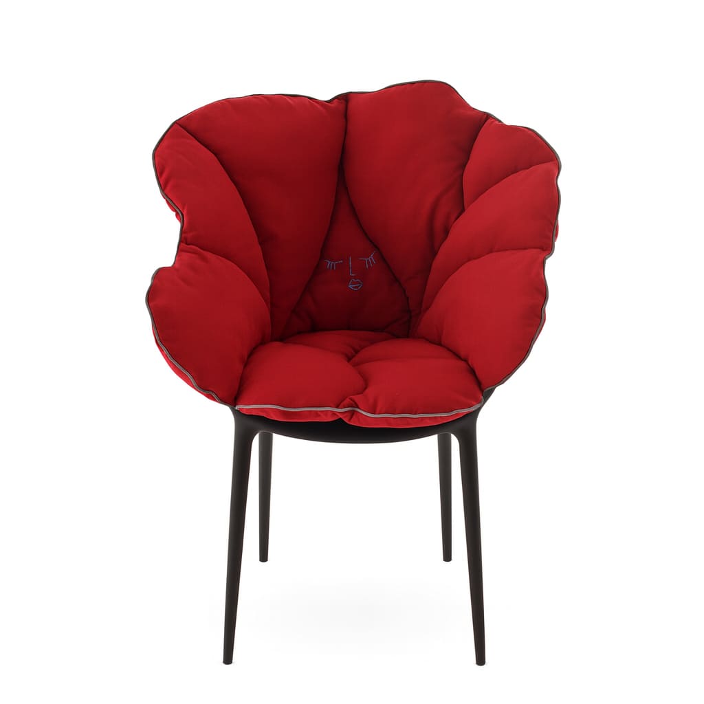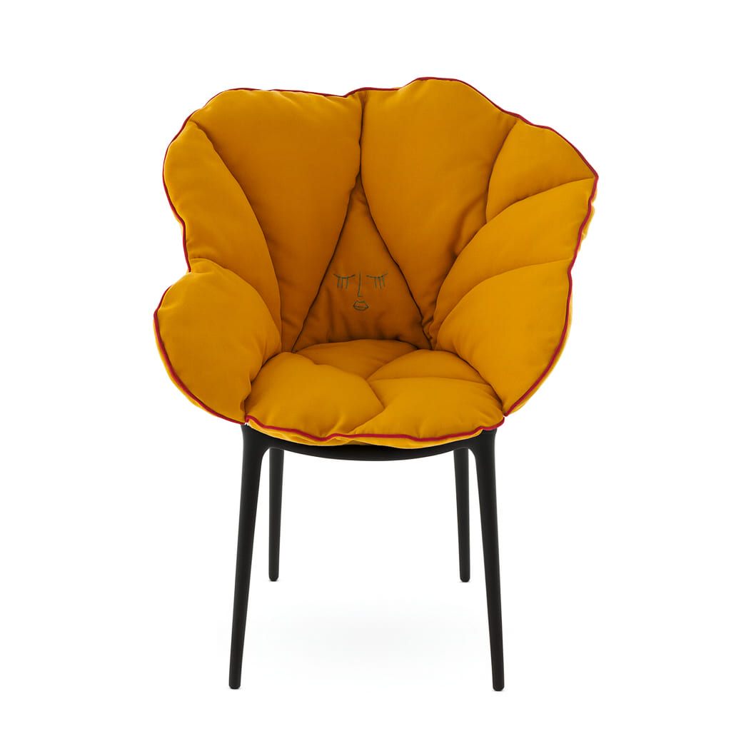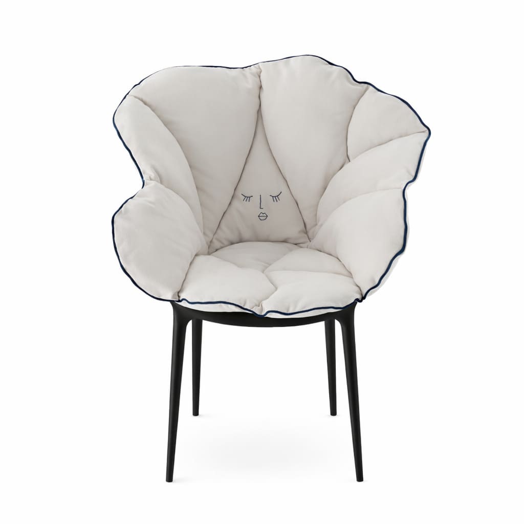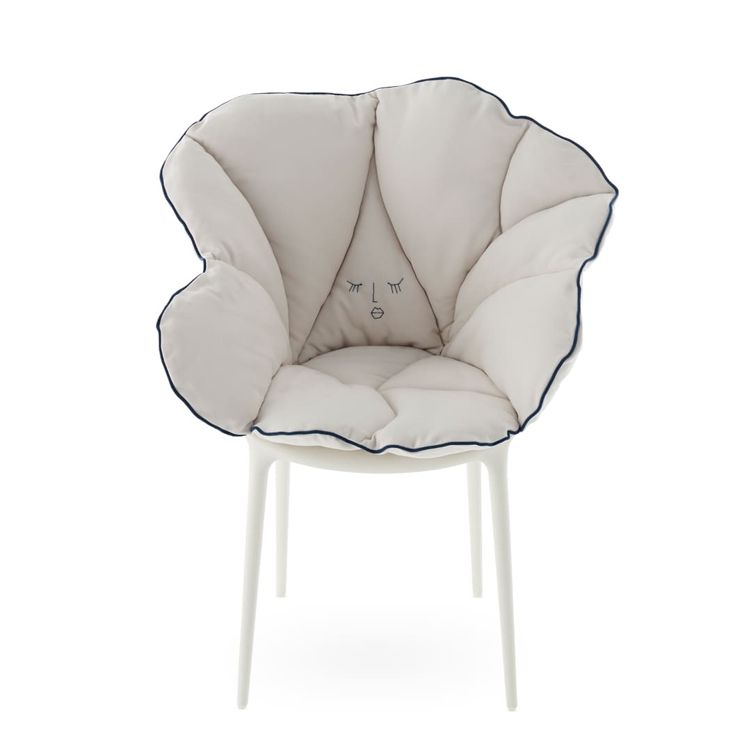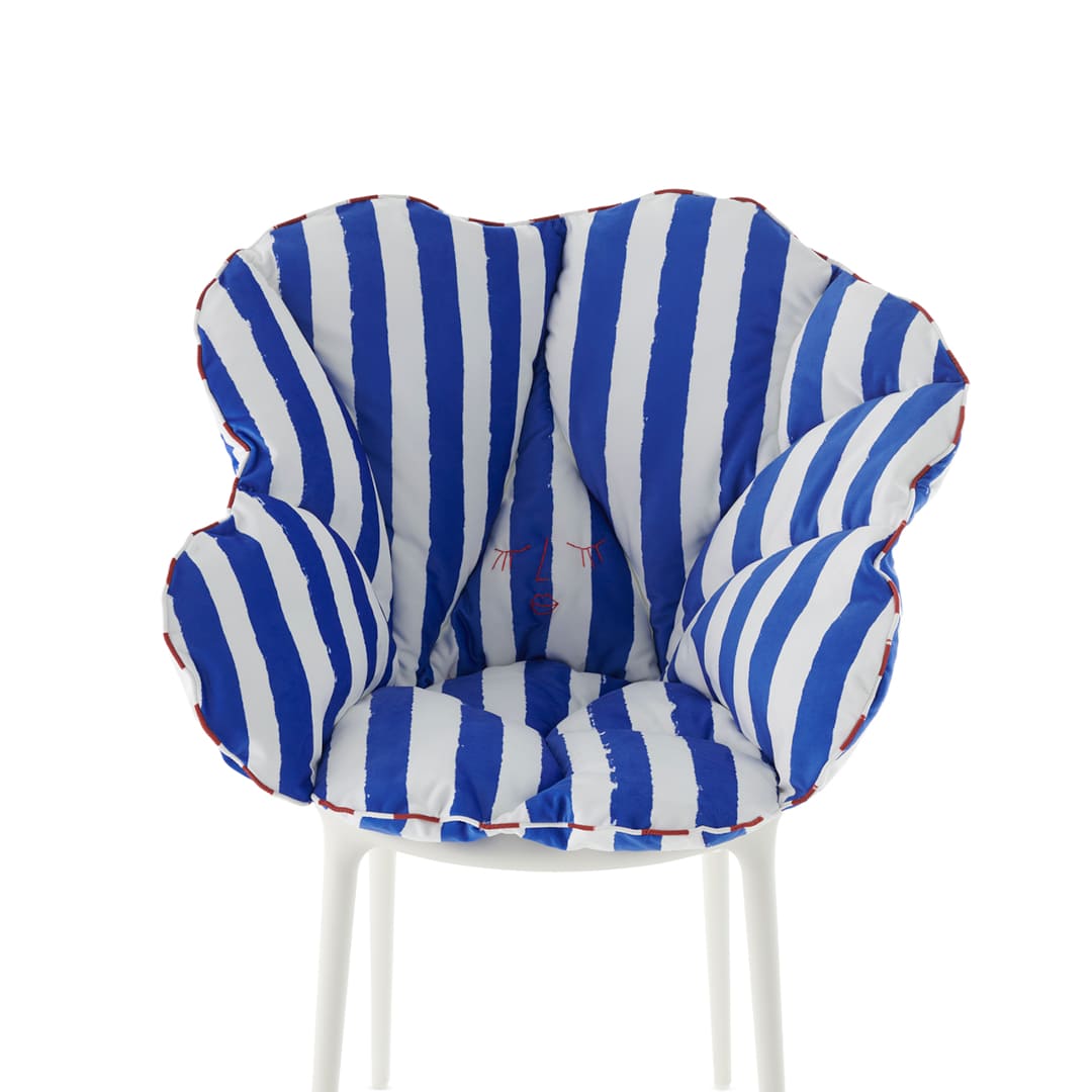 Kartellの象徴的なチェアに重ねるだけで、花びらが包み込むような柔らかさが加わり、軽やかな素材美と快適性が共存する新しい座り心地を生み出します。