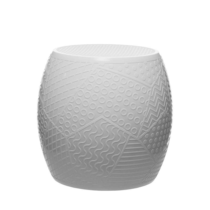 古くからある典型的な樽型のチャイニーズスツールの形に、ロイ・リキテンシュタインを連想させるアメリカンポップアートのグラフィックパターン。